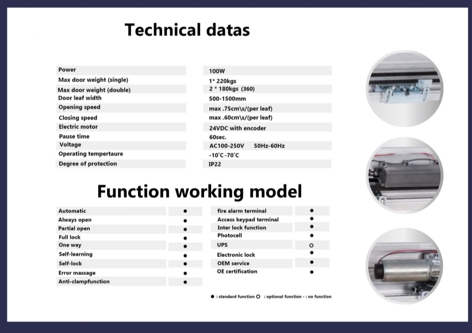 Max door weight (single) | 1*220kgs |